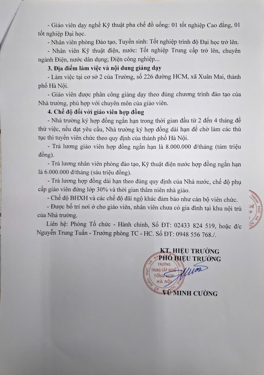 Tuyển giáo viên và nhân viên phòng Tổ chức – Hành chính, phòng Đào tạo