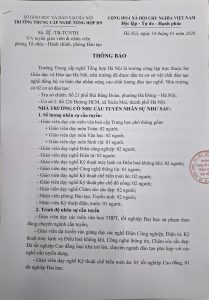 Đề nghị các bậc phụ huynh và các bạn học sinh đúng 7h30’ Ngày 20/07/2022 các em có mặt tại trường để làm thủ tục đăng ký và nhập học.